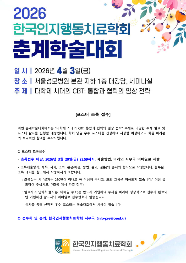 2026년 한국인지행동치료학회 춘계학술대회 포스터 초록 접수 안내